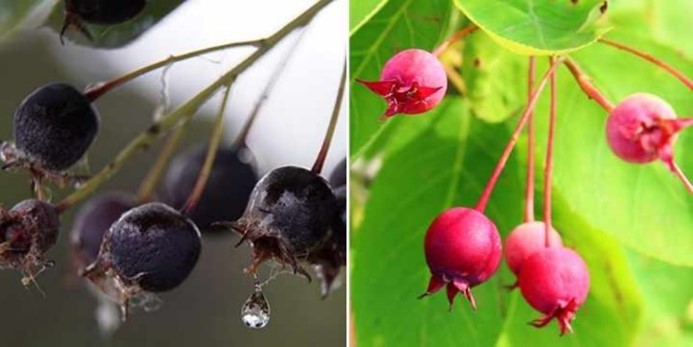 Serviceberry trees can be identified by their long oval leaves with finely serrated edges, clusters of showy white 5-petalled flowers, smooth gray bark, and small round edible purple pome fruits. The Serviceberry are excellent garden landscaping plants because they have a visual appeal in all four seasons. This tree is ideal for any small garden.